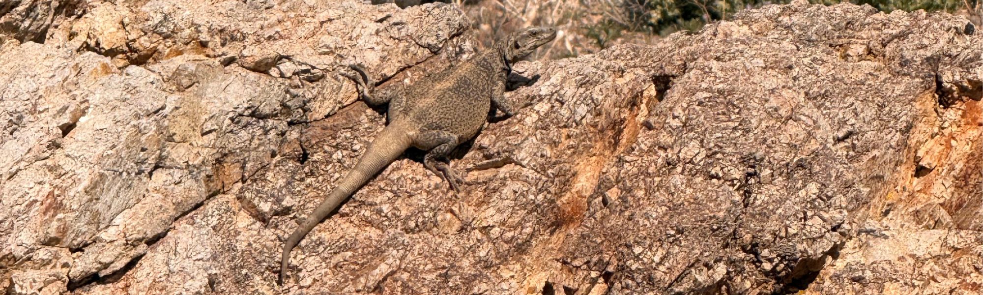 Instead, the variety of life grew. Desert horned lizards camouflaged in the rocks. A long-nosed leopard lizard sat by a bush. And perched on a sun-warmed rock, completely unbothered by our presence, was a chuckwalla—a large, thick, prehistoric-looking lizard who had apparently decided we were neither a threat nor interesting. It just sat there. Still. Certain.